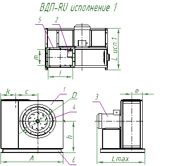 Габаритные и присоединительные размеры вентиляторов ВДП-RU